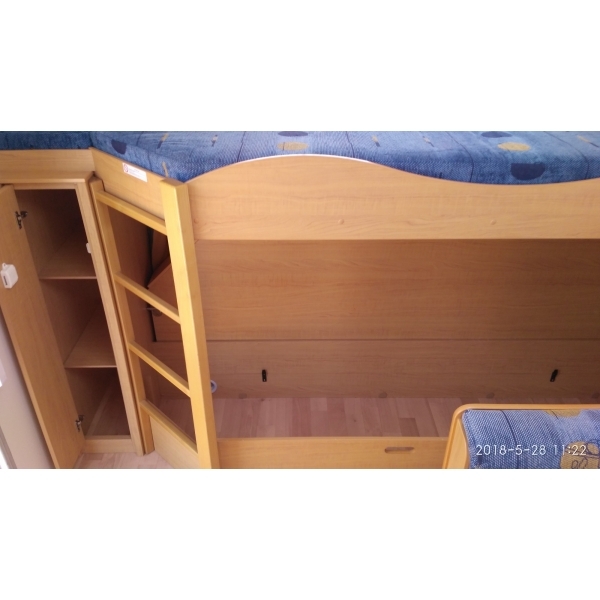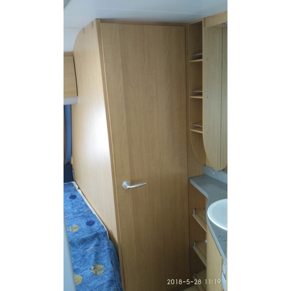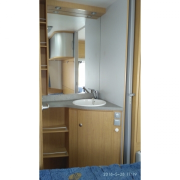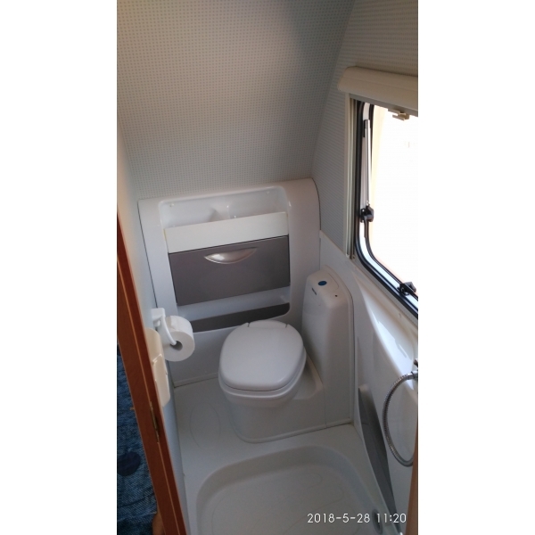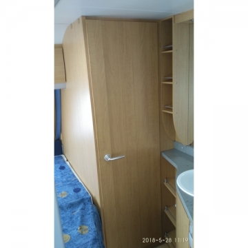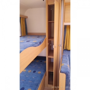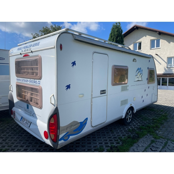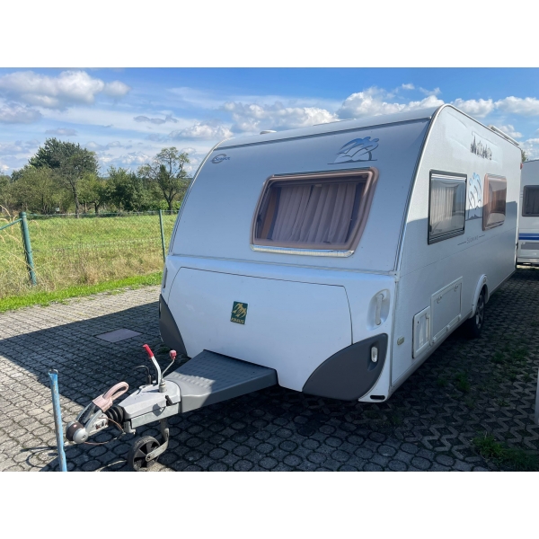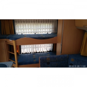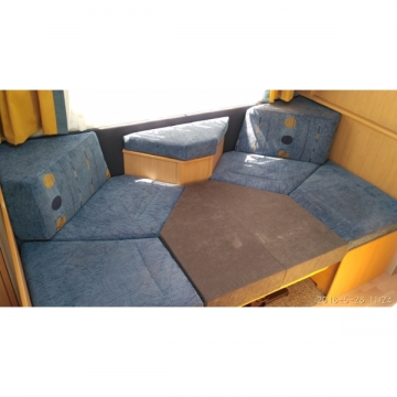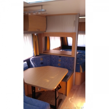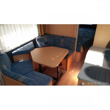Jednoosý obytný přívěs, který má v přední části ložnici s francouzskou postelí, koupelna s umyvadlem, oddělený chemický WC Tehford a sprchu. Uprostřed obývací pokoj s možností složení na lůžko pro dvě osoby. Na proti kuchyň s tříplotýnkovým vařičem, nerezovým dřezem a trojkombinační lednicí s velkým mrazákem 12V / 230 V / PB. Skříň s plynovým topením a 230 V ultraheat TRUMA s rozvodem po karavanu. V zadní části dvě poschoďové postele. V tomto obytném přívěsu je rozvod teplé a studené vody, boiler 5 L na 230 V, vytahovací nádrž na pitnou vodu 30 L. Dále je ve výbavě karavanu servisní dvířka a stabilizační přípojná hlavice. Přední podpěrné kolečko s váhou. Venkovní zásuvka 230V s anténní přípojkou. Rolety a moskytiéry ve všech oknech, zahrádka na střeše a stanová předsíň.